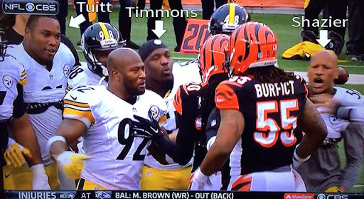 If that wasn’t good enough he then added insult to injury by standing over him. It’s undoubetdly cheap as Schuster clearly looks for a targets Burfict. The smarter block is on Kirkpatrick which leaves Bell with open field. He however clearly ignores his blocking assignment to try and lay a cheap shot on Burfict. In fact, it’s so obvious it was what he intended to do the whole time that I begin to wonder if it wasn’t scripted into the gameplan by the players. It makes it more credible hearing Antonio Brown yelling “Karma” in the background immediately after the game in this interview, and then watch his demeanor in his interview. As a fan watching this rivalry for decades, I would not put this past the Steelers. I understand it is Burfict, and his history is as dirty as a player comes. That argument, however, as a way to justify the actions is as bad as the action itself. Burfict may not be an angel, but neither are the Steelers. The Steelers year after year seem to get a pass on being one of the dirtier teams in the league. This isn’t just this series. Want some examples?