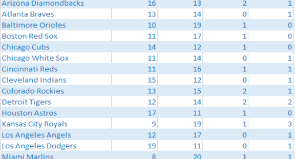 Last year I made avideo about Ties in baseball and what that would look like. This is an ongoing issue, which I support to change in MLB. The change would benefit baseball and is a gauge of a team’s true record as well as saving bullpen arms from overuse. There are many other reasons for the change and I’ll update with a recap of last year in the future. However, as of now take a look at the current up to date 2019 tie chart for every team.